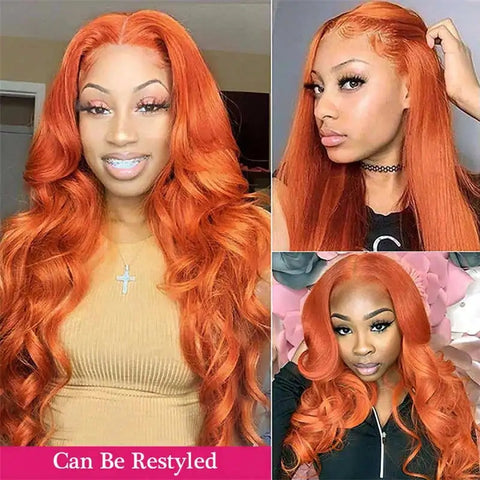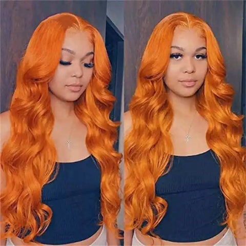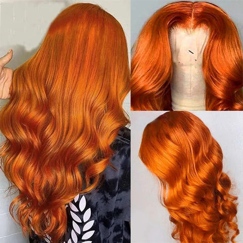 Orange Ginger Color 13x4 Lace Front Wigs Pre Plucked Brazilian Body Wave Human Hair Wig 180% Density Princess Hair Lace Wig #PA1108